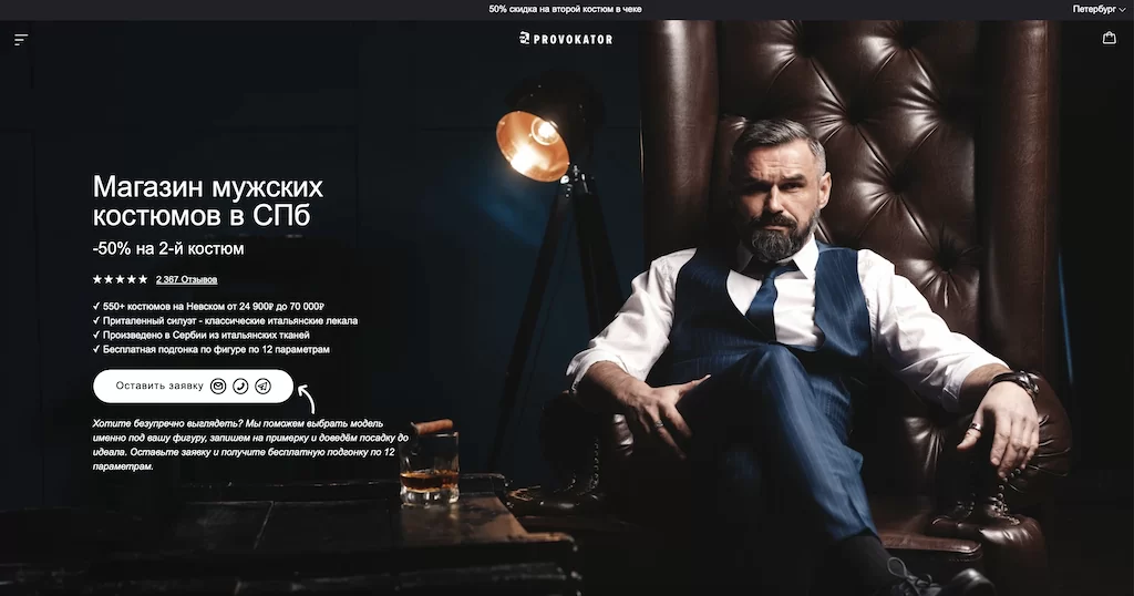 Конверсия интернет-магазина мужских костюмов в Санкт-Петербурге фото