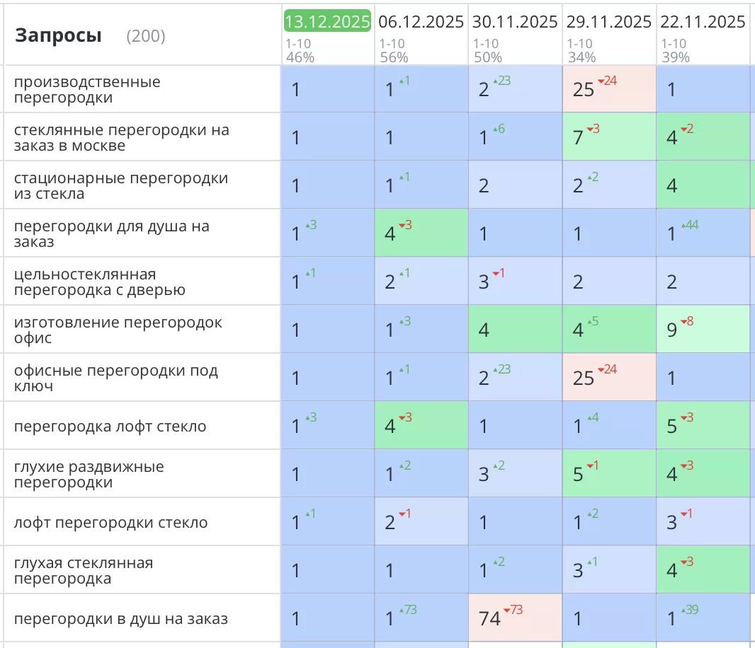 Было выполнено продвижение сайта «PPK-Grupp» по установке офисных перегородок в Москве. В процессе работы сначала были устранены технические ошибки, сдерживающие рост позиций, а затем проведено комплексное SEO-продвижение. Все основные бюджетонаполняющие ключевые запросы уверенно вышли в ТОП3 Яндекс и зафиксировались там!