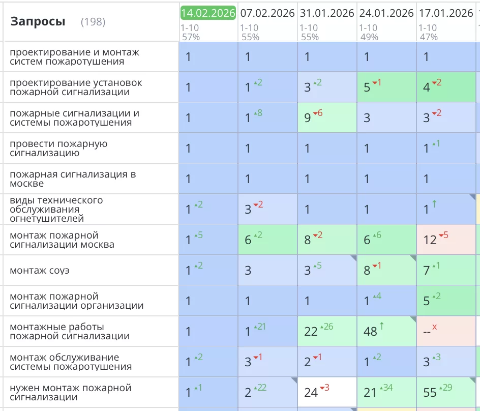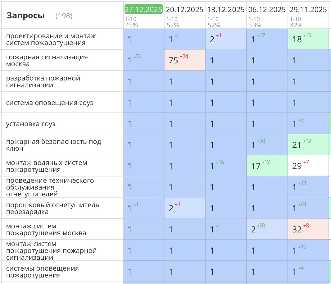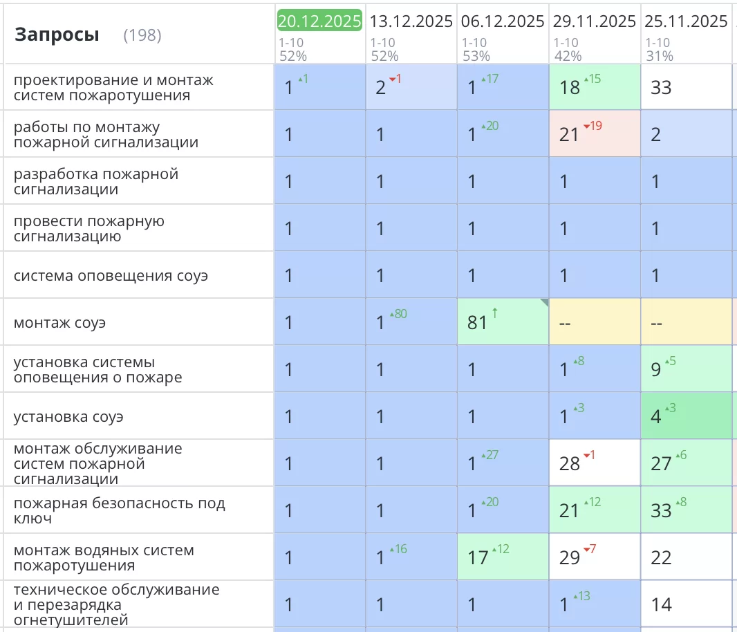 Было выполнено seo продвижение сайта по пожарной безопасности в Москве. Комплексный подход — от исправления критических технических ошибок до систематического SEO-продвижения — позволил вывести сайт https://01proekt.ru на новые высоты. По целевым запросам, связанным с пожарной безопасностью в Москве, сайт значительно укрепил свои позиции в поисковой выдаче Яндекс.