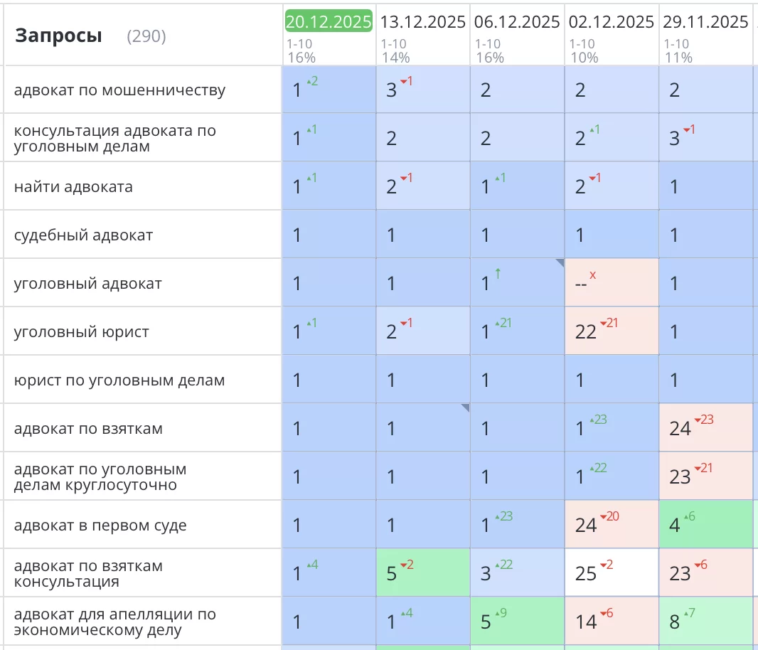 Было выполнено продвижение сайта компании «Адвокатская защита», которая оказывает полный спектр юридических услуг в Красноярске, включая защиту в суде, сопровождение сделок, семейные и уголовные дела. Были выявилены и исправлены технические проблемы, которые сдерживают SEO продвижение, а затем вывели сайт в ТОП1 поисковых систем.