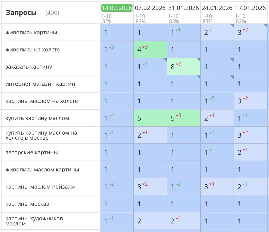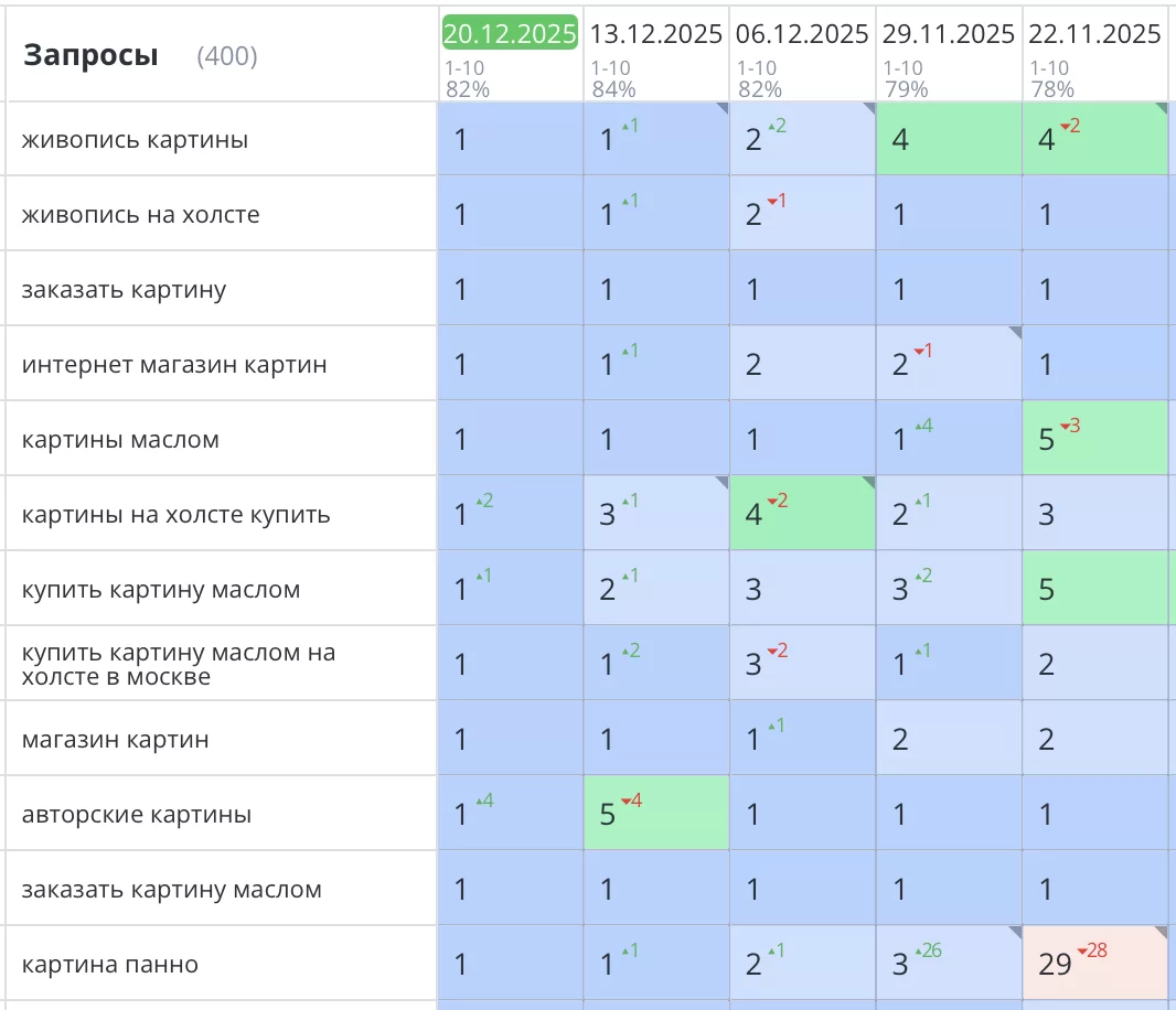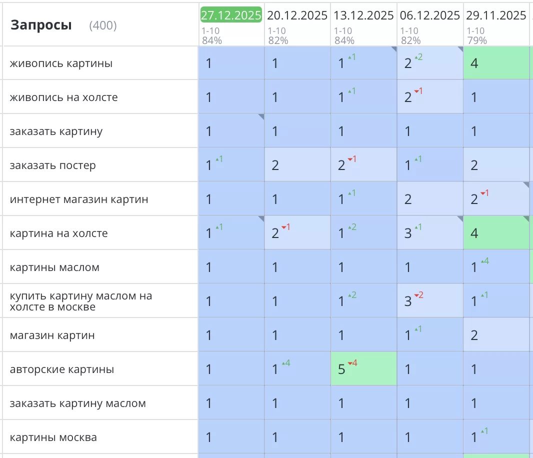 Было выполнено продвижение сайта dasart.ru, где можно заказать печать картины любого формата, либо ее создание художником с помощью масляных красок. Все основные продающие запросы вышли на первые позиции Яндекс и увеличили продажи компании в 3-4 раза.