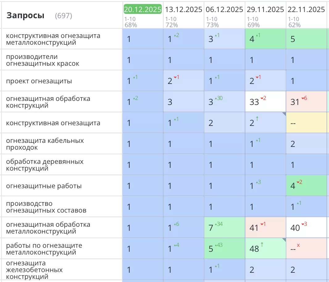 Было выполнено продвижение сайта по огнезащите конструкций в Москве для компании Гермоизол. Все основные продающие запросы вышли в ТОП1 Яндекс и зафиксировались там. Увеличился целевой трафик на сайт, конверсия (звонки) и продажи. А это то, что нужно любому бизнесу!