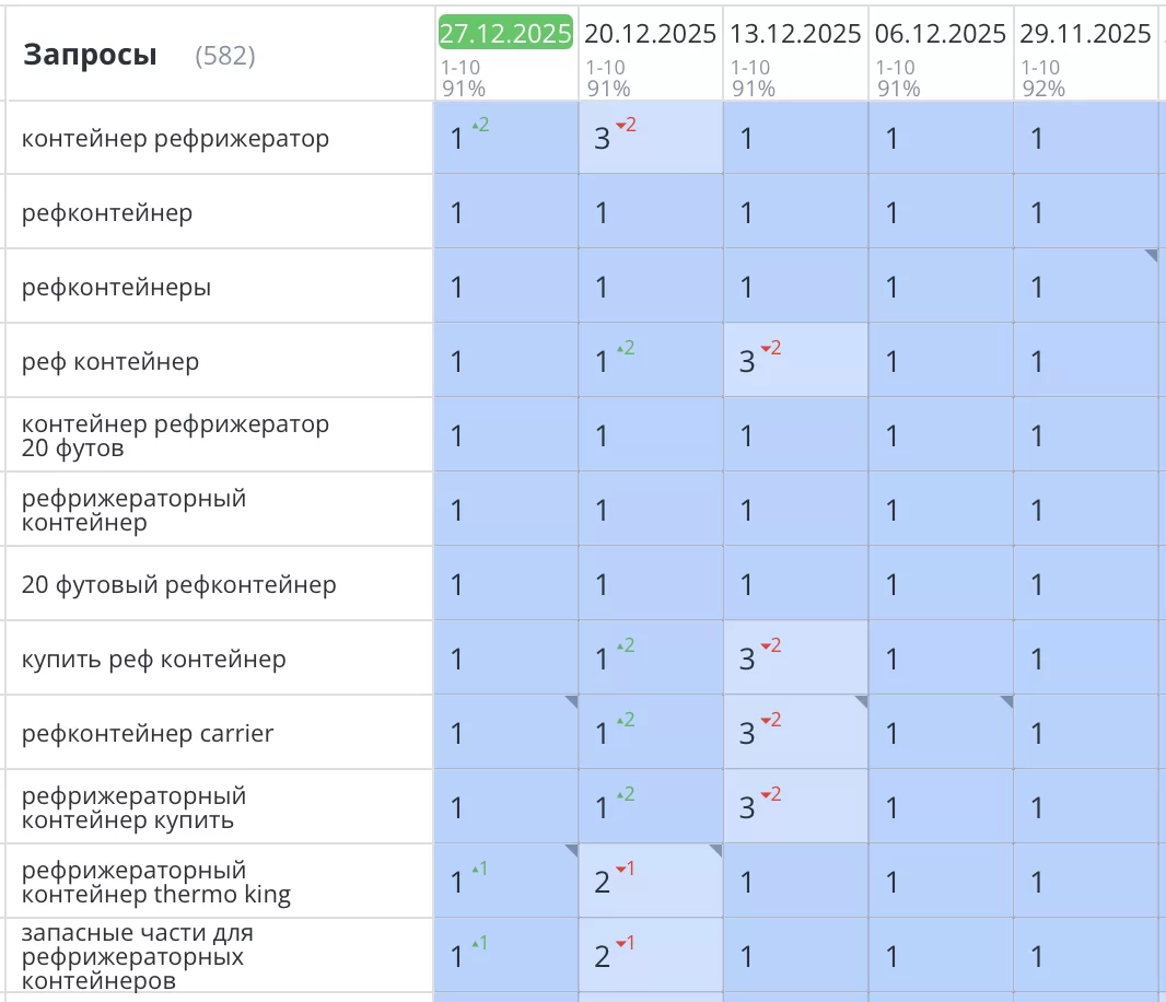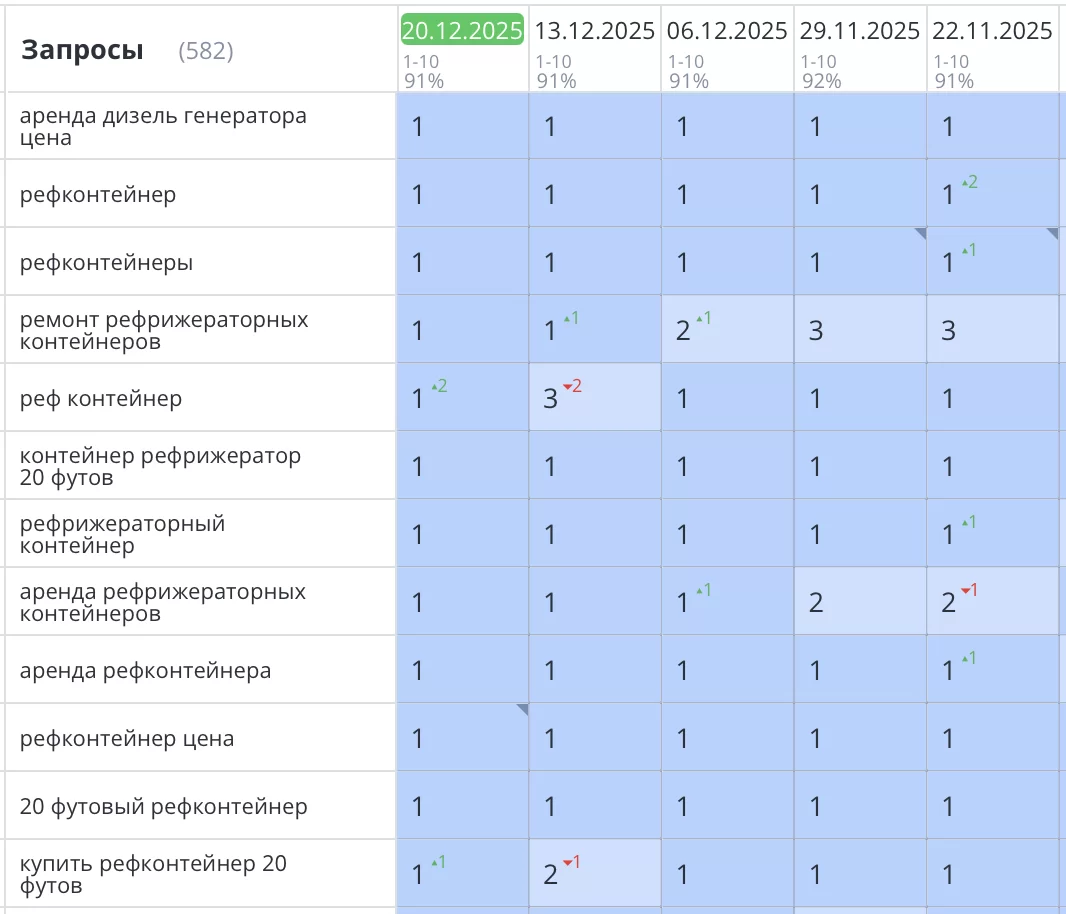 Было выполнено продвижение сайта refexpress.ru по продаже рефконтейнеров и навесных дизель-генераторов в Санкт-Петербурге. В процессе работы были выявлены и устранены технические ошибки, мешавшие эффективному SEO-продвижению, после чего проведена комплексная оптимизация для роста позиций и трафика.