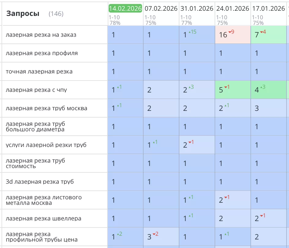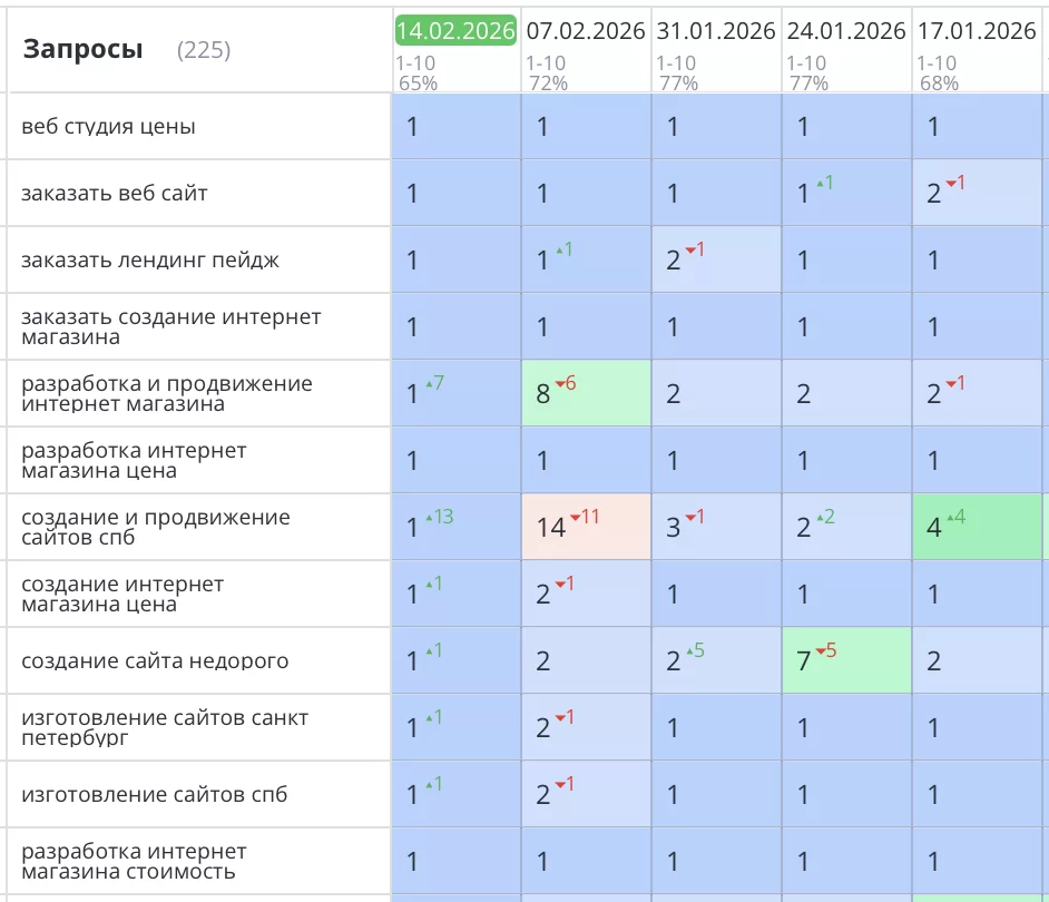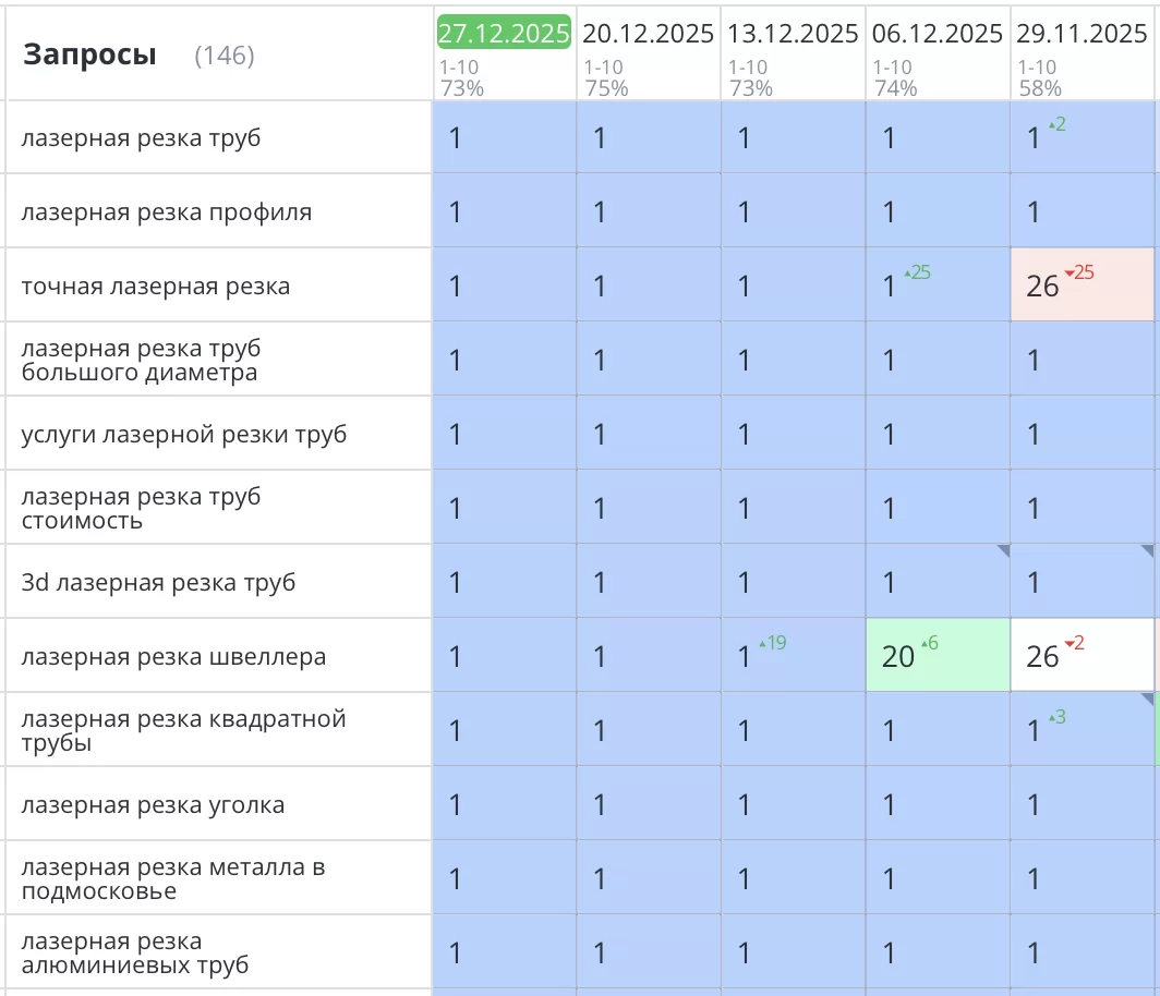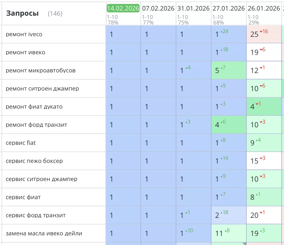 Рост позиций и трафика после начала SEO работ.