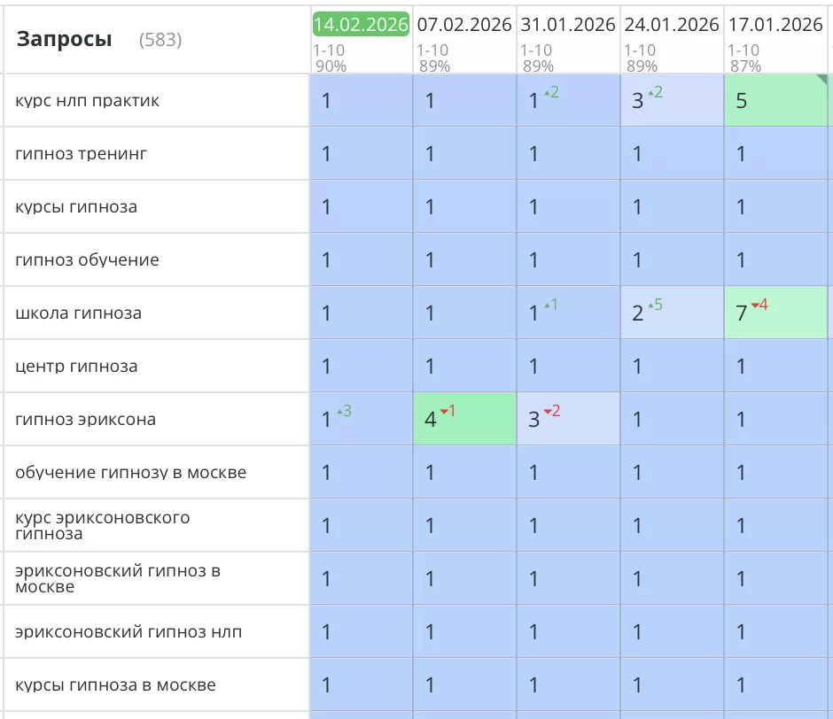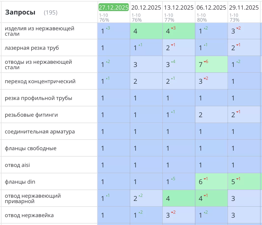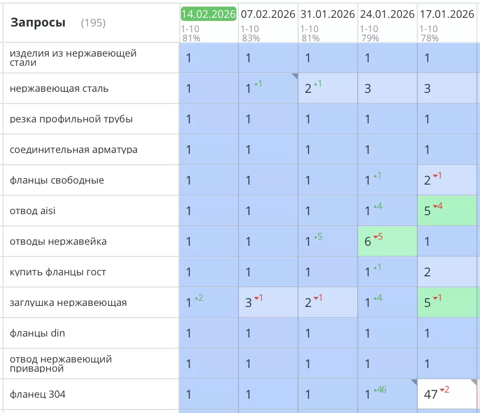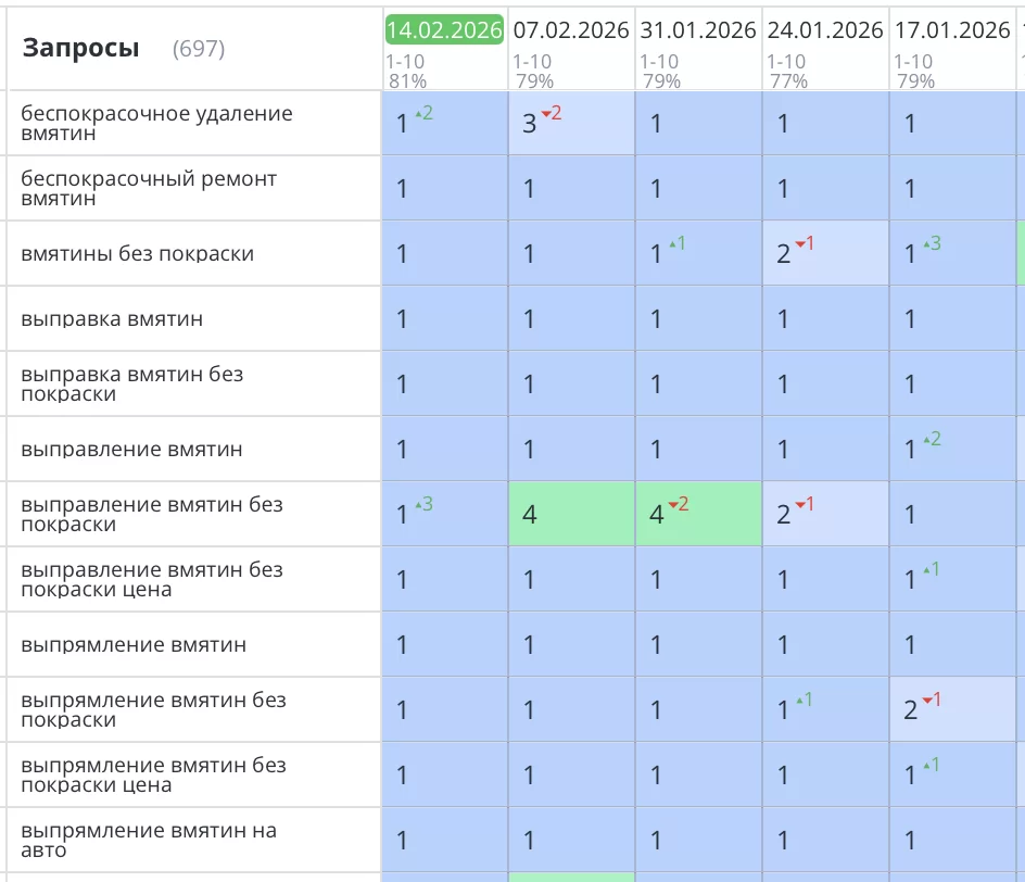 Рост позиций и трафика после начала SEO работ.