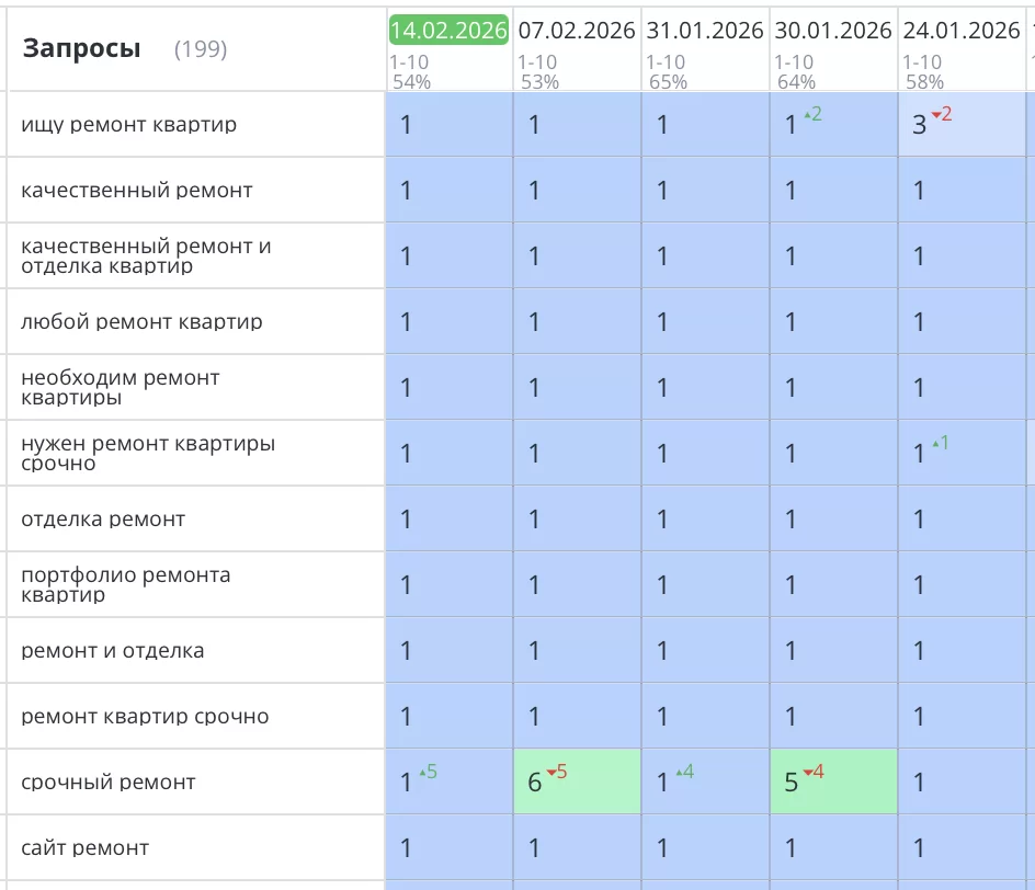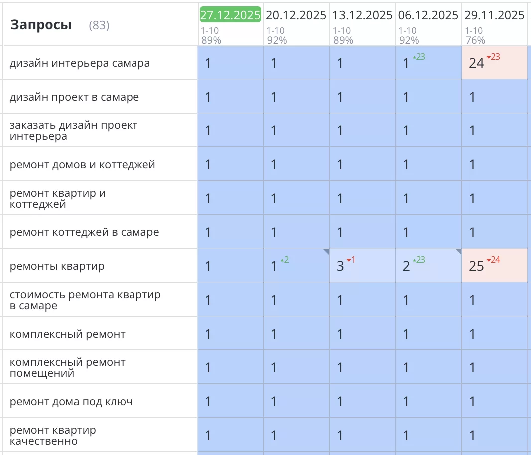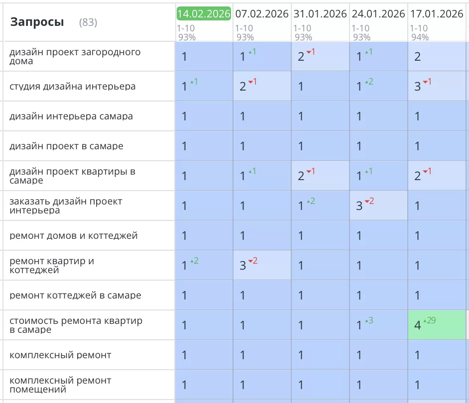 Было выполнено seo продвижение сайта ремонта квартир в Самаре для компании «Мастер-Хаус». Благодаря комплексному seo подходу, где техническая часть была фундаментом, сайт master-house63.pro стабильно занимает высокие позиции в поиске Яндекс по основным коммерческим запросам, связанным с ремонтом и дизайном квартир в Самаре.