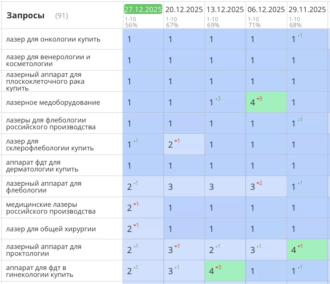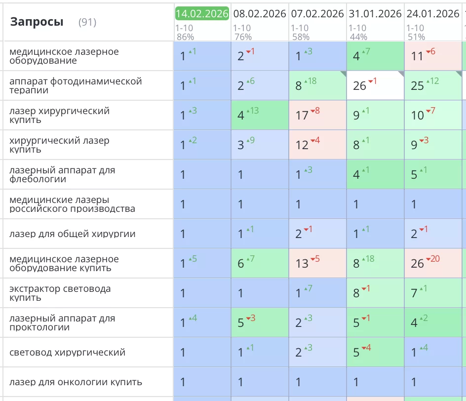 Было выполнено продвижение сайта клиники косметологии в Перми, «KlinikaMedline.ru». Проект является наглядным примером того, как комплексный подход, начинающийся с исправления фундаментальных ошибок, приводит к стабильному росту позиций и целевого трафика в Яндекс.