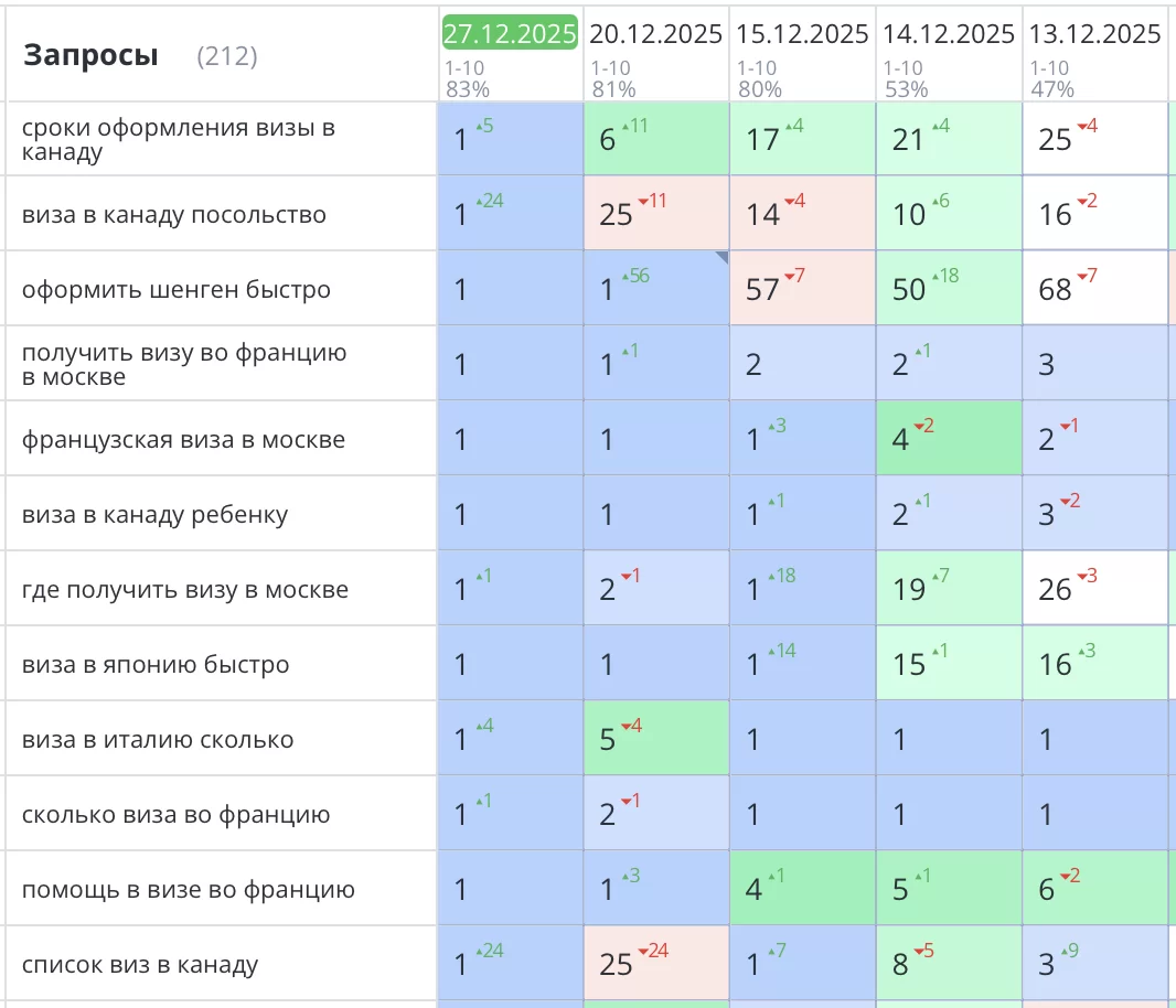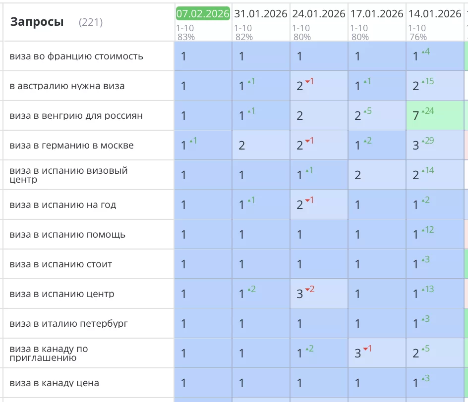 Было выполнено продвижение сайта визового центра в Санкт-Петербурге для компании «EV AGENCY». Мы применили ряд стратегий SEO, которые помогли добиться значительных результатов. Все основные ключевые запросы вышли и зафиксировались в ТОП1 Яндекс, а целевой трафик и продажи увеличились в разы.