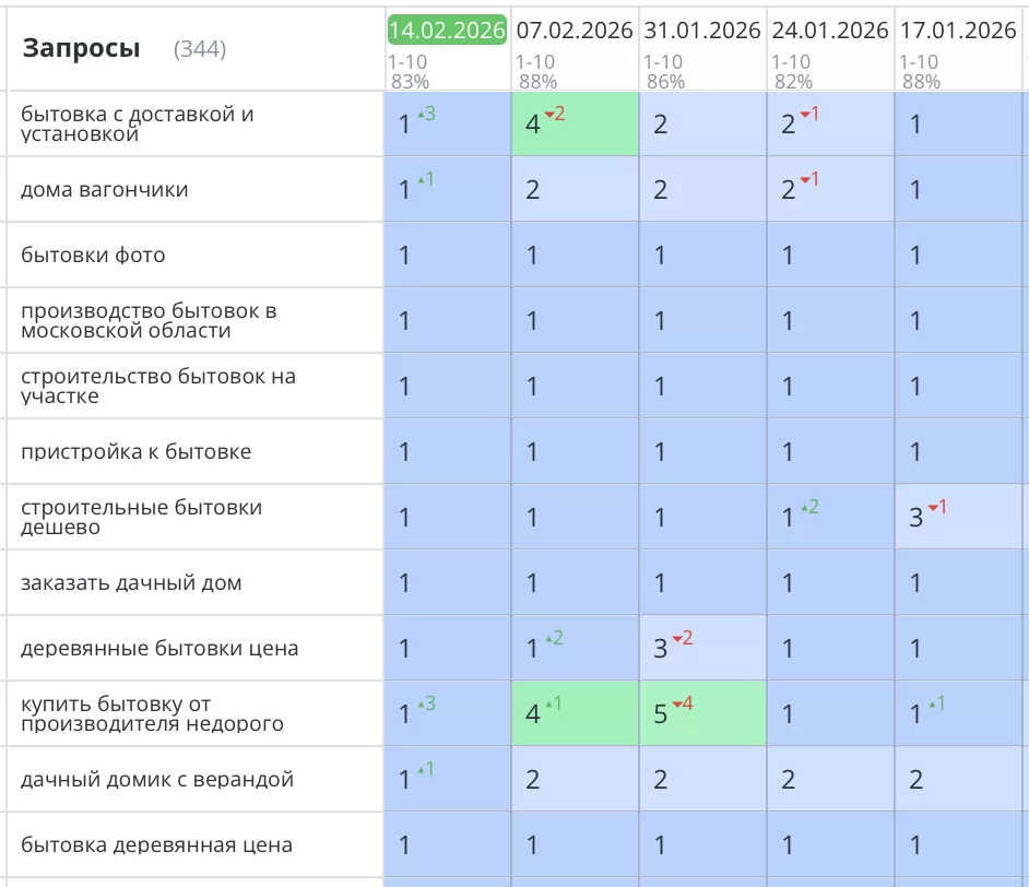 Было выполнено продвижение сайта https://bitovka50.ru по продаже дачных бытовок и строительных вагончиков в Москве. Сайт компании «Бытовка50» уверенно вышел всеми бюджетонаполняющими запросами в ТОП3 Яндекс и начал приносить целевой трафик и заказы.