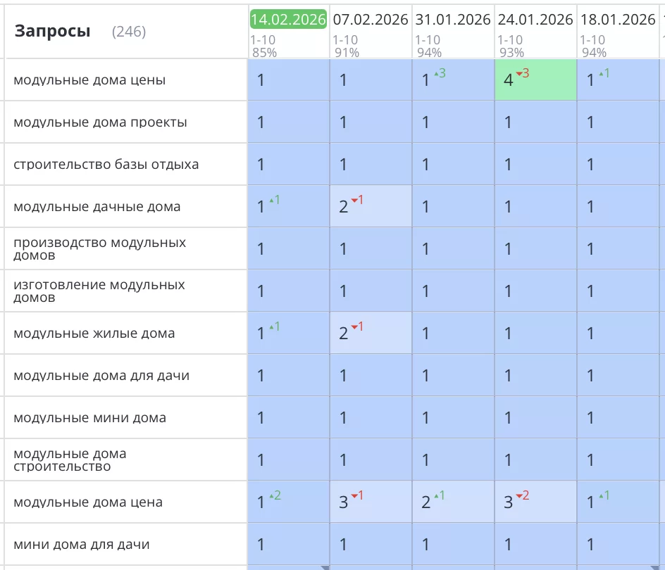 Было выполнено продвижение сайта для компании «FL HAUS» по строительству модульных домов в Санкт-Петербурге и Ленинградской области. Все позиции стремительно взлетели в ТОП1 Яндекс и там зафиксировались. Значительно увеличилась видимость сайта, целевой трафик и конверсии (звонки и заказы).