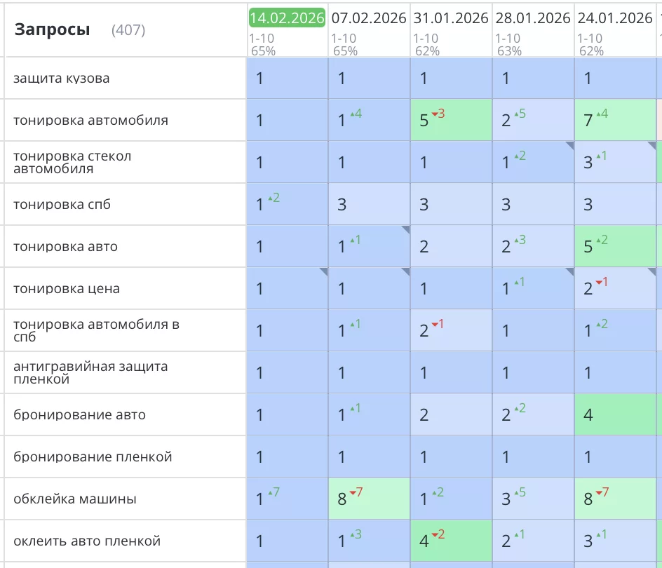 Было выполнено продвижение сайта компании, занимающейся бронированием, тонировкой и оклейкой кузова автомобиля в Санкт-Петербурге. Наш подход к SEO-продвижению был комплексным и целенаправленным, что позволило значительно увеличить видимость компании в онлайн-пространстве и привлечь больше потенциальных клиентов.